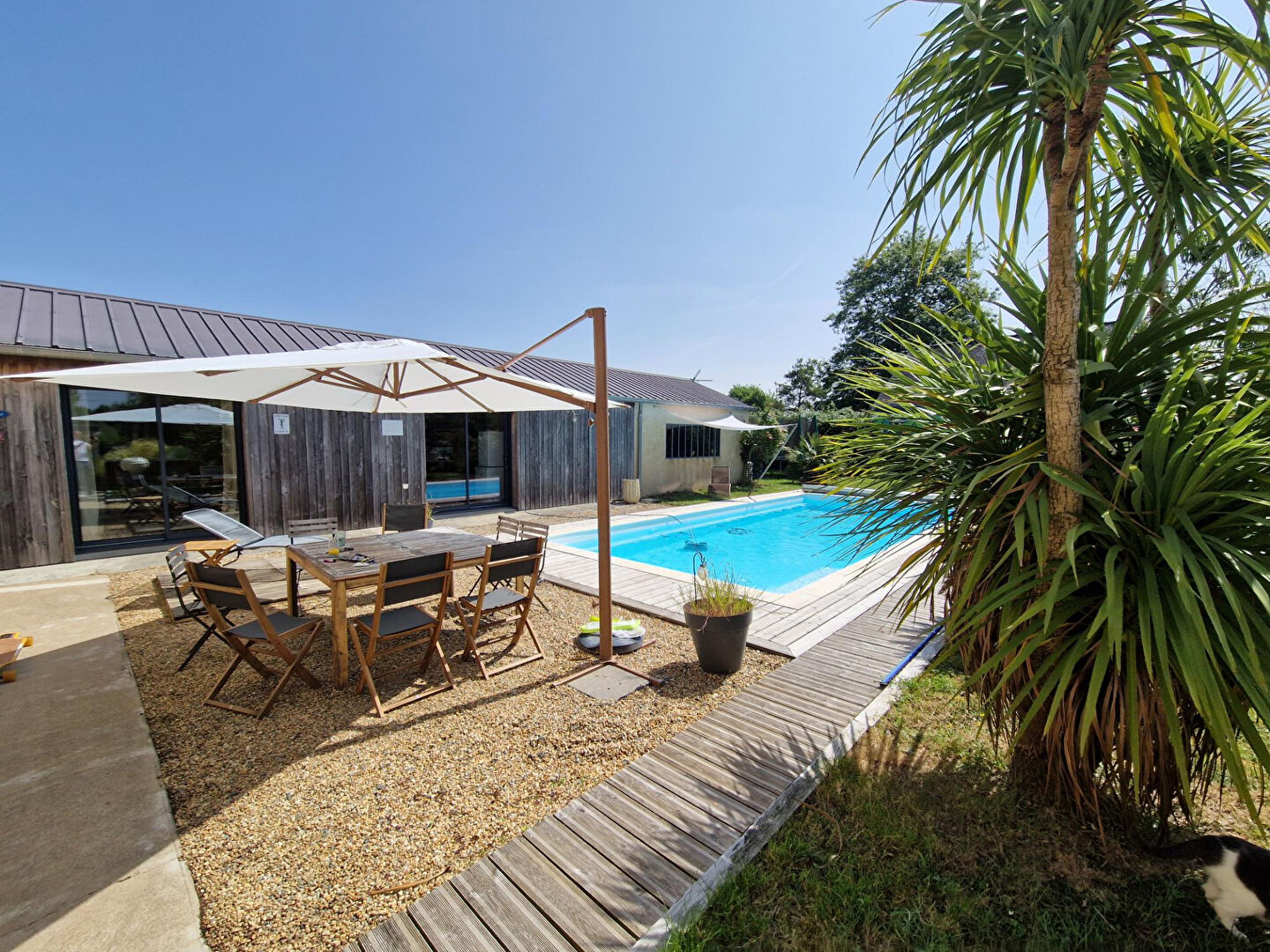 À l'extérieur, vous profiterez d'une magnifique piscine chauffée par Pompe à Chaleur et orientée Plein Sud, idéale pour les beaux jours, et de plusieurs dépendances (60m²) qui offrent de nombreuses opportunités : rangement, atelier, carport.