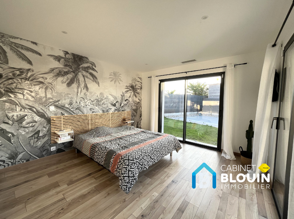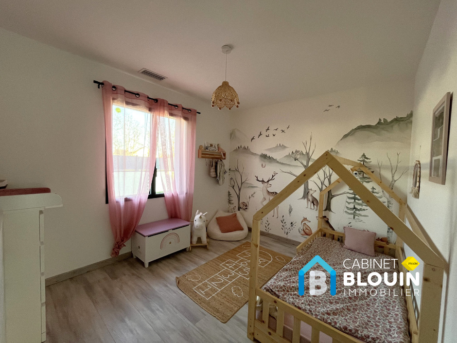 Au calme, maison de plain pied de 2020 et extension 2023, comprenant une grande pièce de vie lumineuse avec espace cuisine aménagée et équipée, un dégagement desservant quatre belles chambres dont une grande suite parentale lumineuse avec dressing et salle d'eau privative.